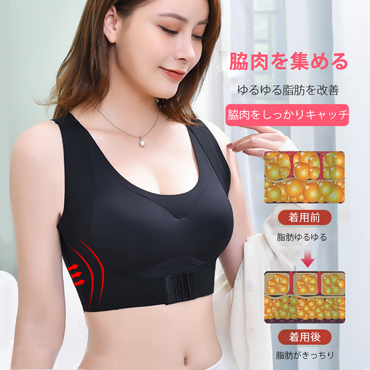 正しい姿勢が 自然と身につく フロント3段ホック付き、着け脱ぎやすい姿勢矯正ブラ 谷間メイク 爽やか通気