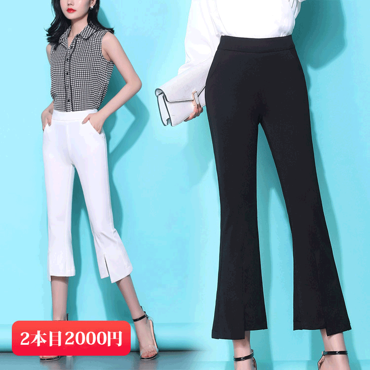 【フレアパンツ】伸縮性の高いウエストゴム ヒップすっぽり フレア裾口 計算された美フレア